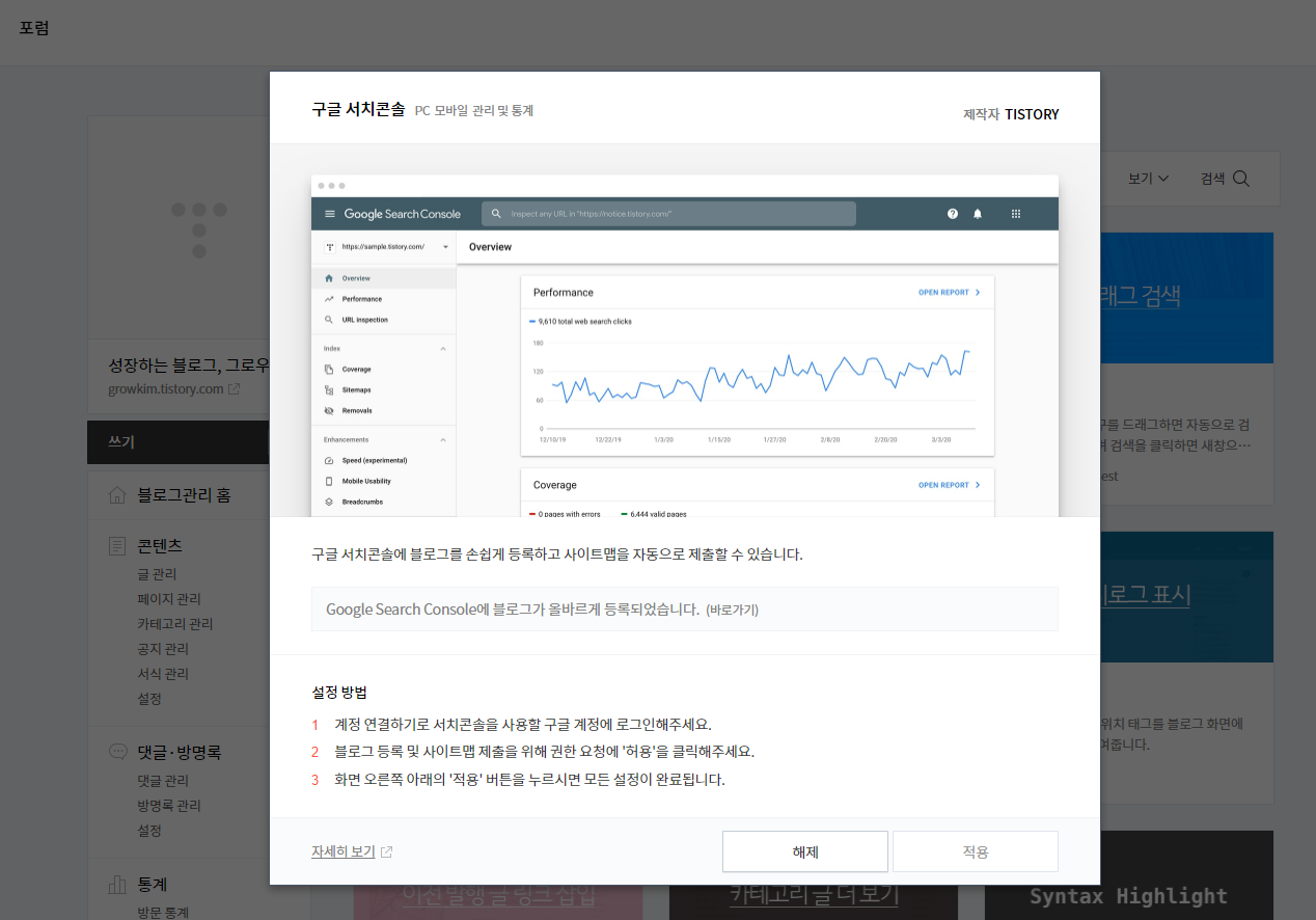 티스토리 블로그 구글 검색에 노출시키는 방법 - 구글 서치 콘솔 연동하기